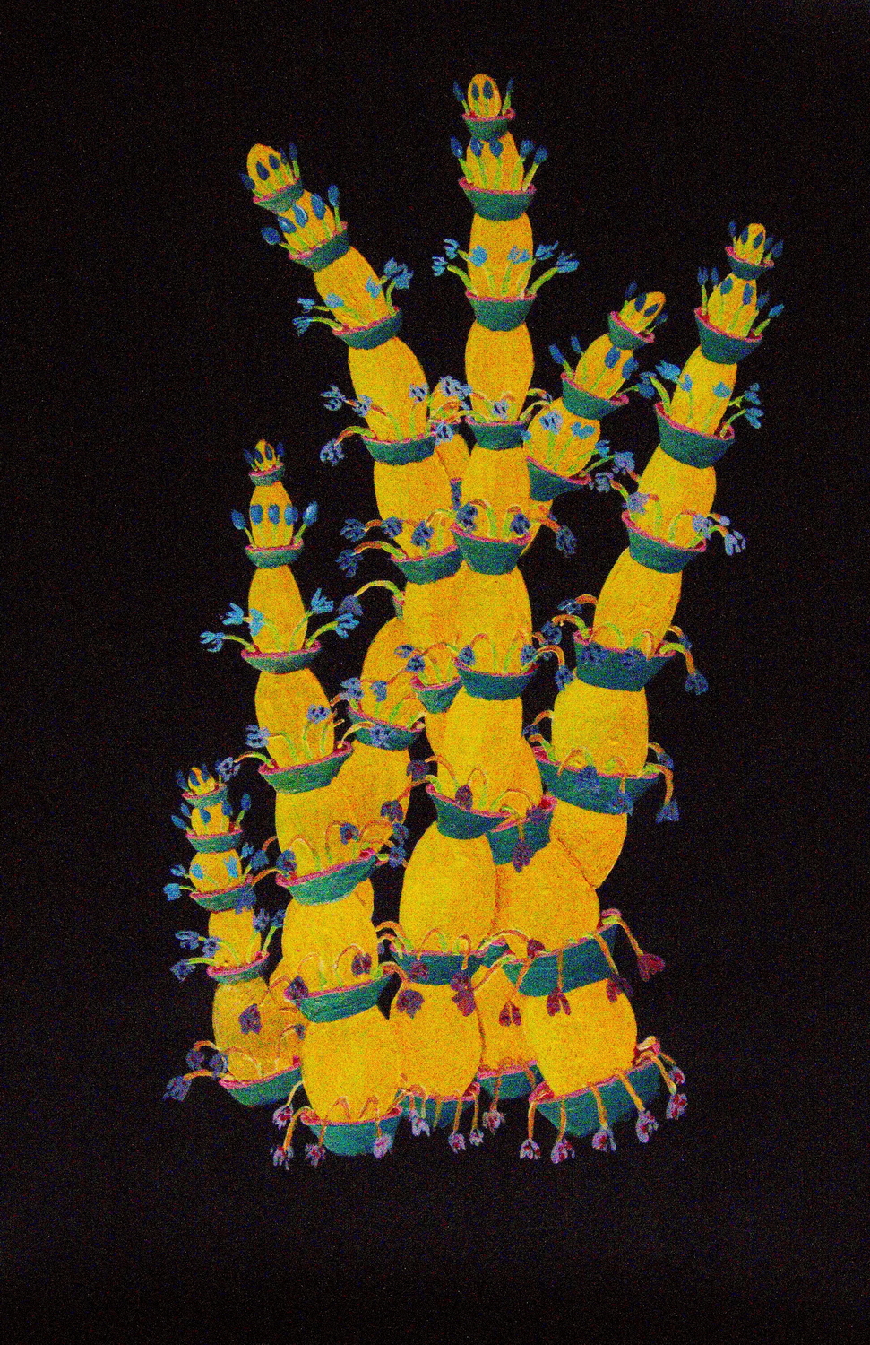 Op mijn magische schilderijen komen bomen en planten voor die ik (nog) geen naam heb gegeven.