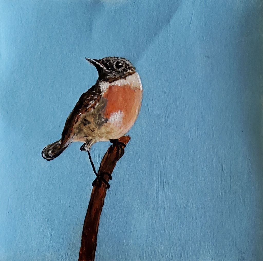 Roodborsttapuit  acryl op papier  12×12 cm