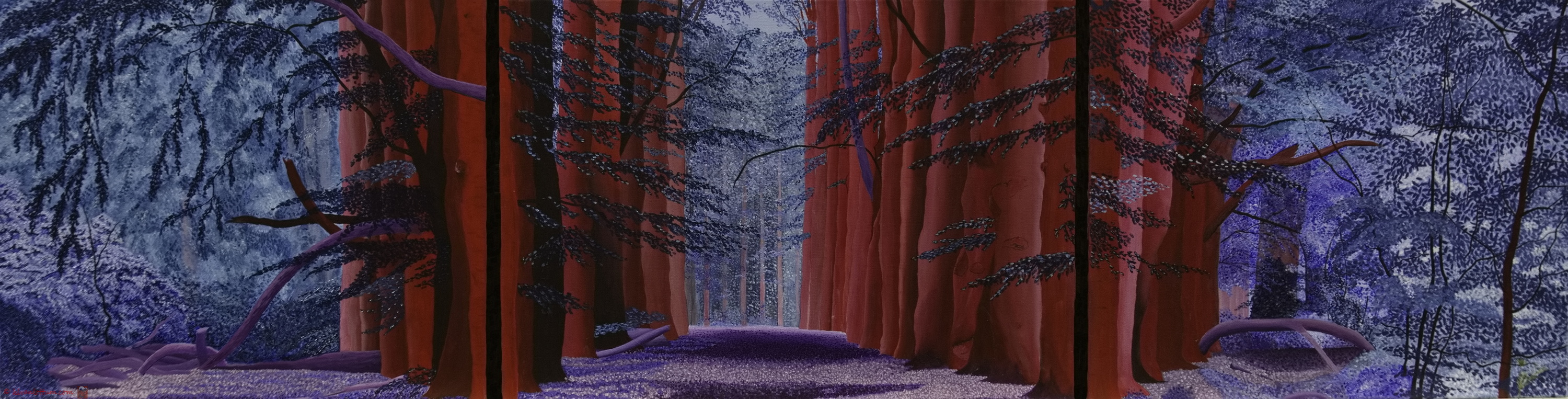 Joppe in rood en blauw – acryl op linnen – 190 x 50 cm – drieluik