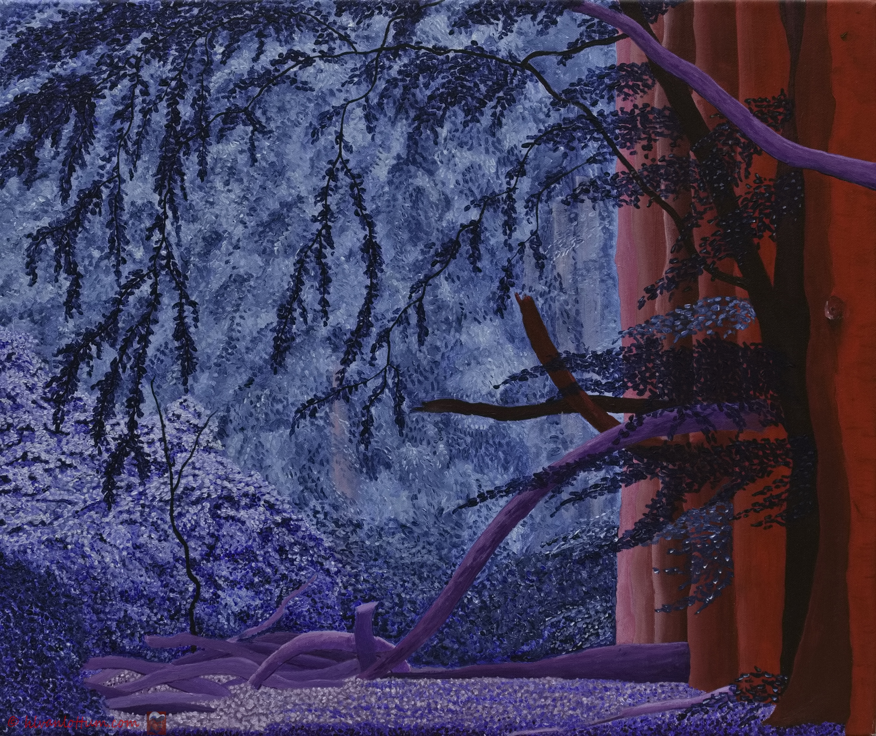 Op 7 mei van dit jaar heb ik dit schilderij, met een toelichting, al geplaatst. Zoals ik toen al schreef heb ik het schilderij in de daarvoor bedoelde lijst geplaatst en het duinzand bij gewerkt, voetstappen in het zand. Ook de kleur is minder helder, nu meer naar het schilderij, dan toen op de foto.