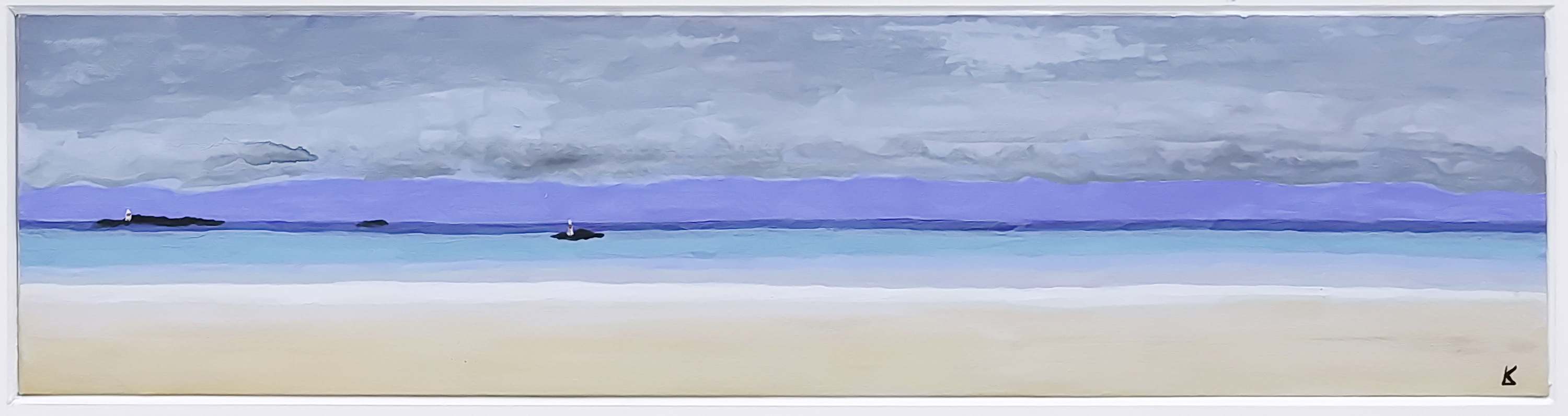 Plage de Binic – acryl op passe-partout karton 40 x 10 cm