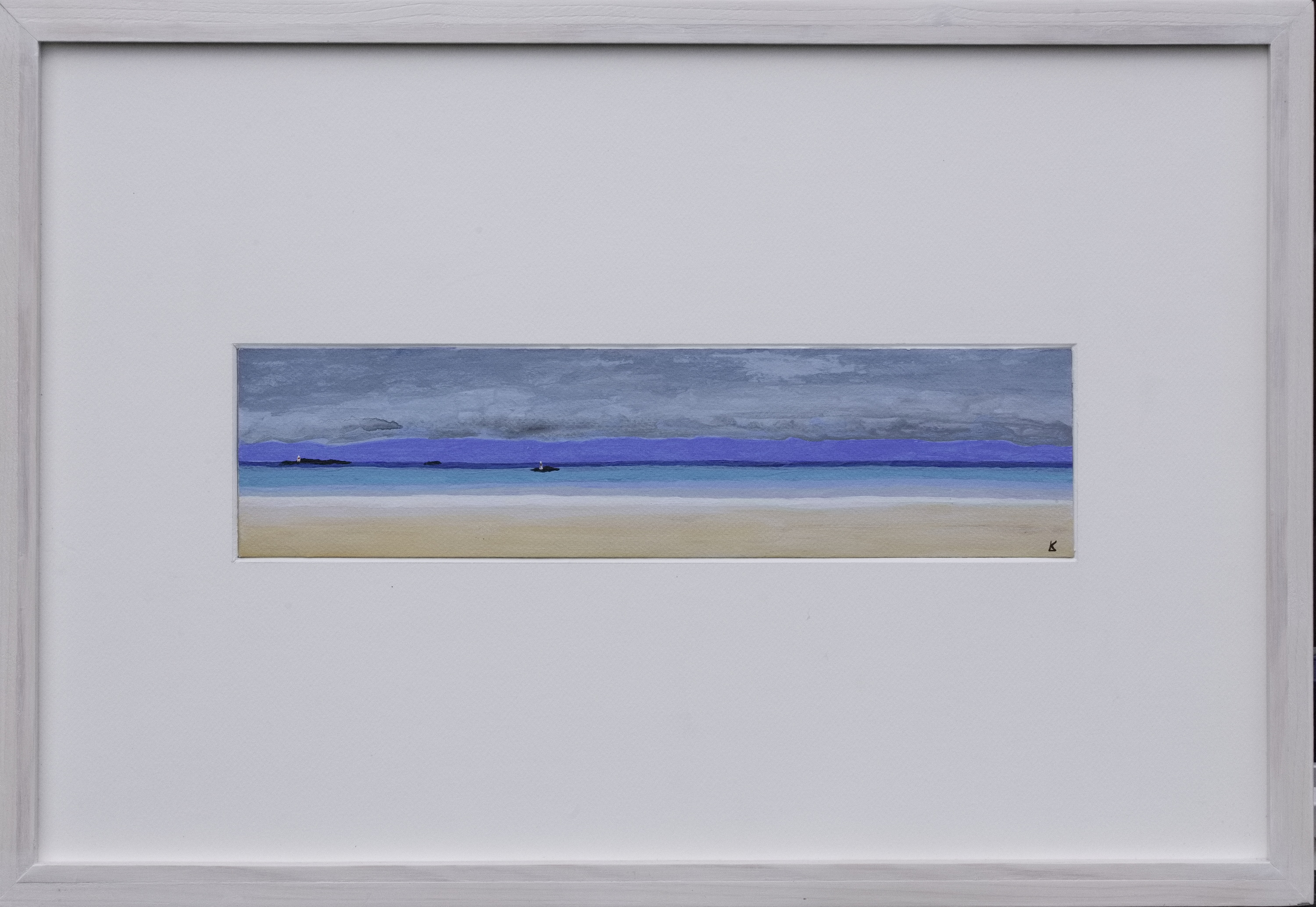 het schilderijtje is gemaakt met acryl op passe-partout karton en heeft een afmeting van 40 x 10 cm.