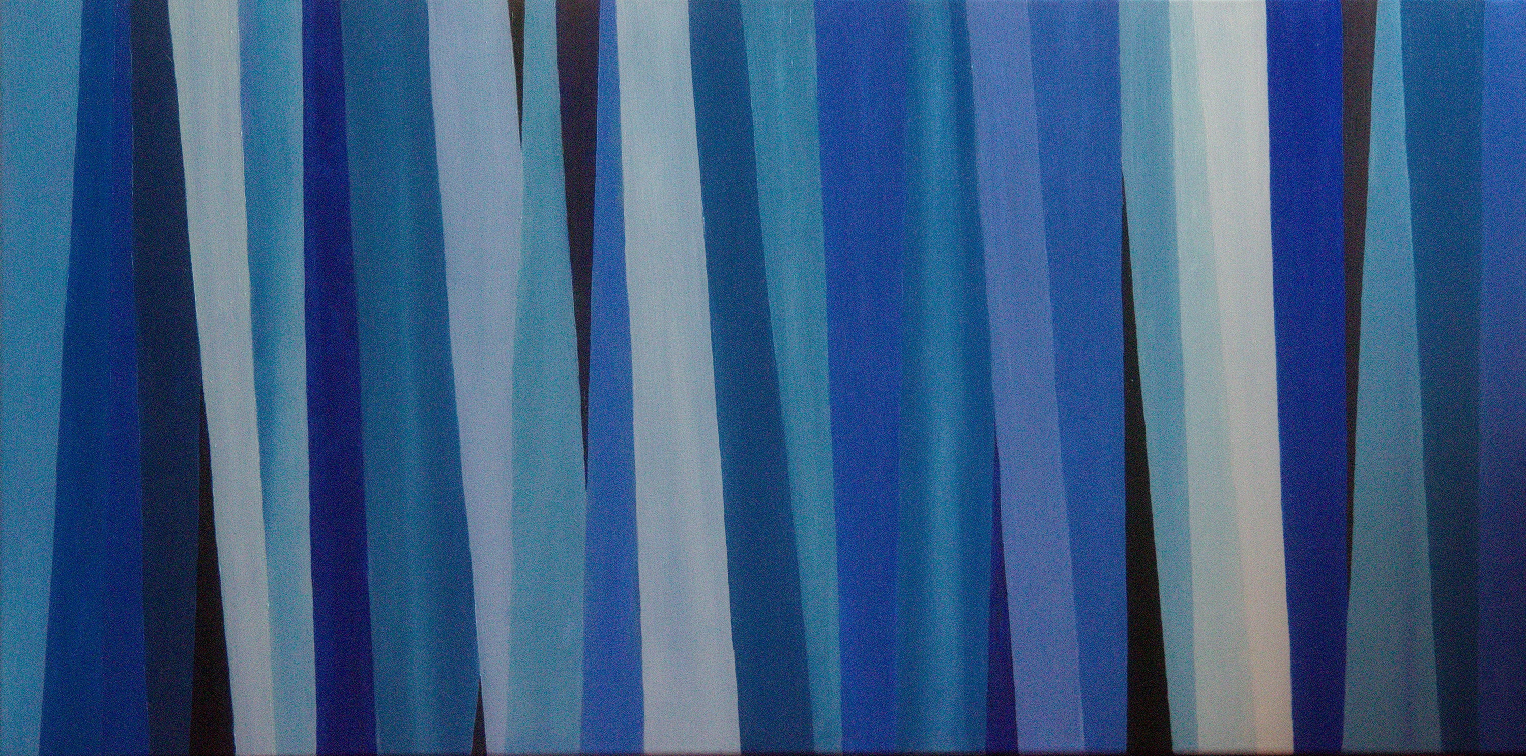 De patronen van de schors die ik schilder zijn niet zoals ze er in de werkelijkheid exact uitzien. Ik geef de vormen weer zoals ik ze waarneem. Ik heb voor de kleur blauw gekozen om het geheel meer abstract te maken en los te laten komen van de werkelijke schors van de platanen.