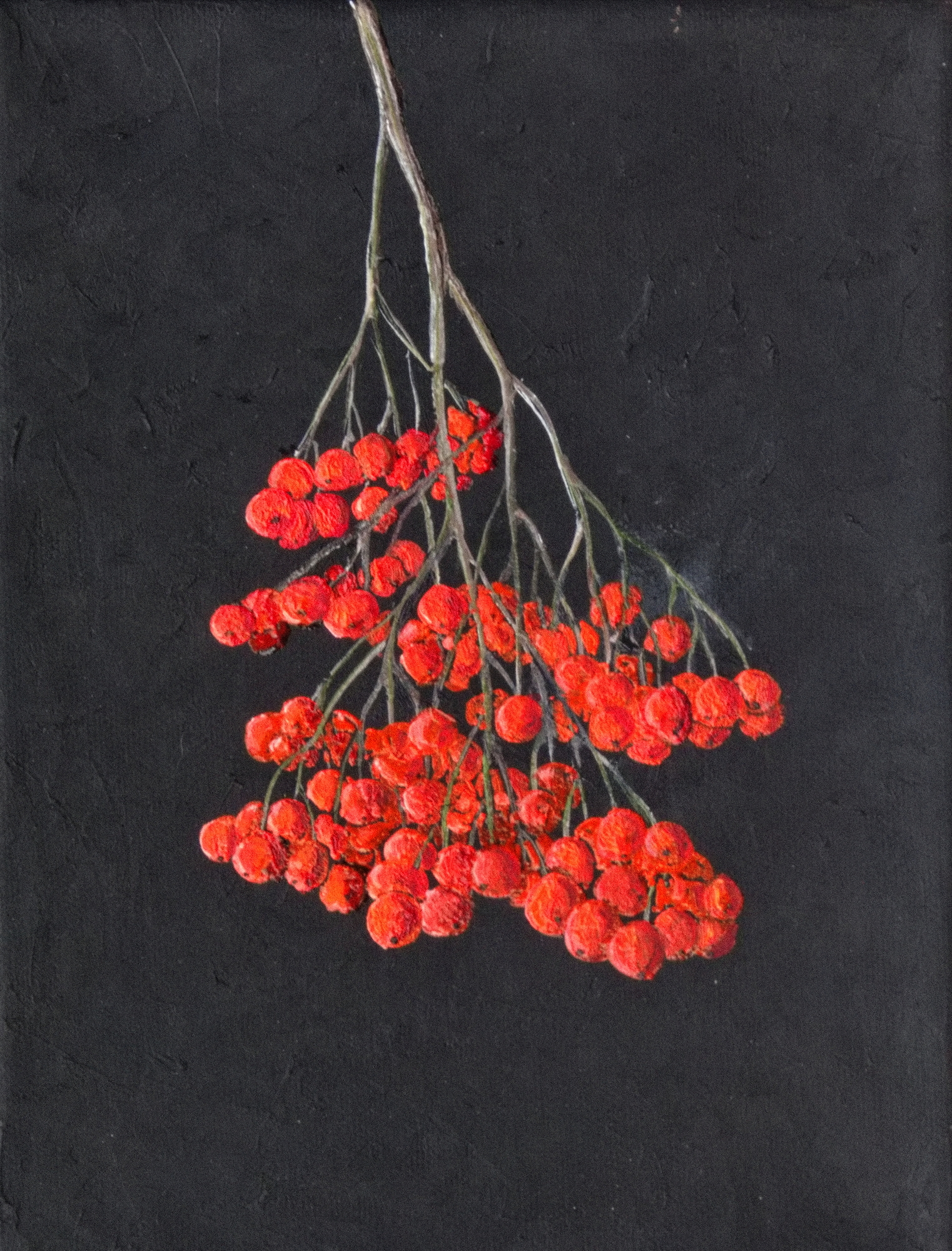 Dit keer een klein doekje, een trosje bessen van de Gelderse roos.